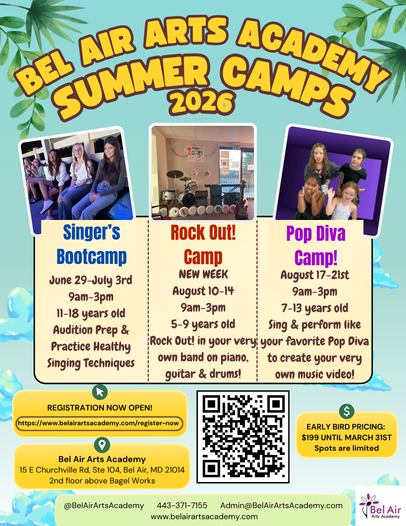 Refer a Friend! For this week only! If your referral registers for a Group Class, Lesson, or Parent's Night Out - YOU get a free class pass or waived recital fee ($40-45 value)! Share your love of music by sharing this link to refer a friend: Register Now | Bel Air Arts Academy Promo valid until Sunday, December 7th at Midnight! EXCELLENCE THRIVES IN COMMUNITY Stay connected with us! Follow us on our social media platforms to keep up with the latest news and updates. Instag